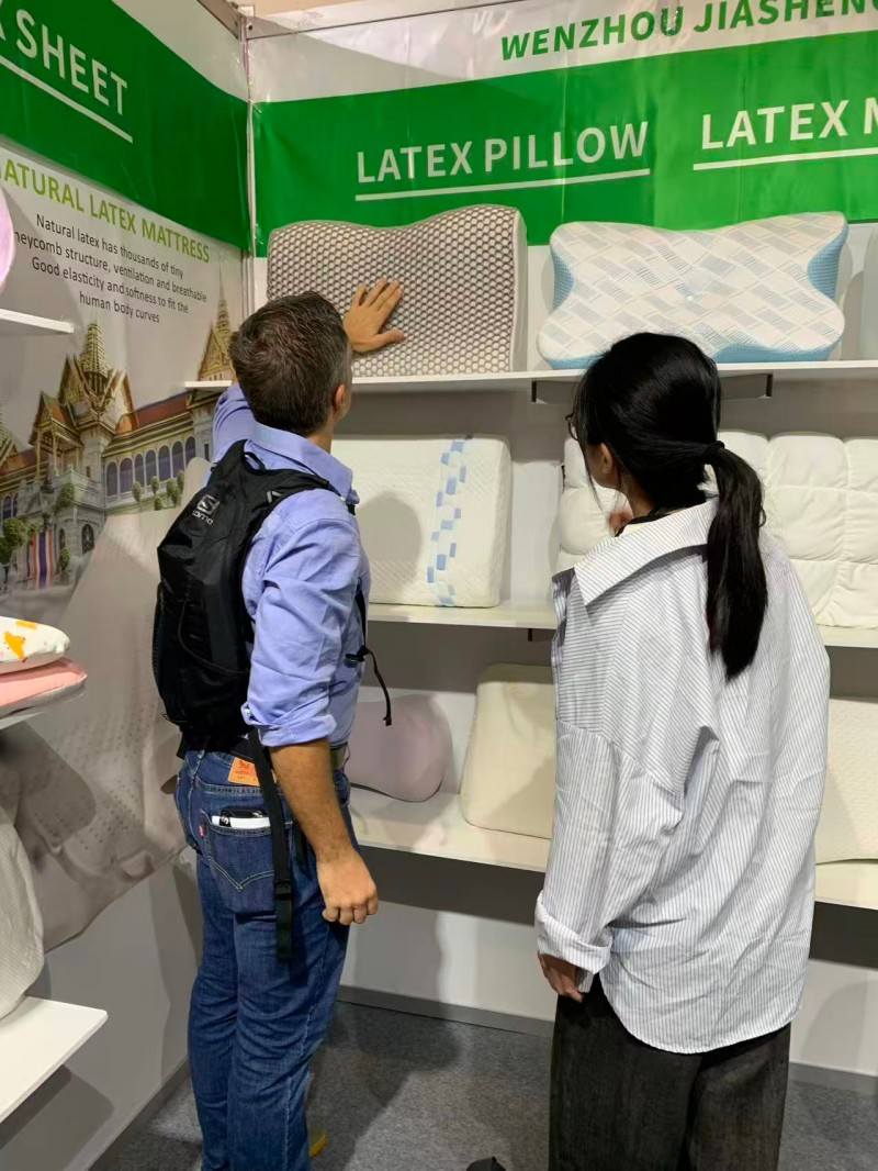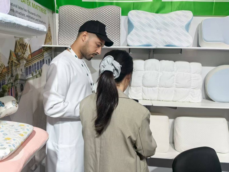 د دوبۍ د خوب په دې نندارتون کې، موږ ویاړو چې د نړۍ له ګوټ ګوټ څخه لیدونکو ته زموږ د خوب متمرکز بالښتونه وښایه. موږ په بازار کې د دوه غوره پلورونکي بالښتونو وړاندې کولو ته وقف شوي یو: دطبیعي لیټیکس بالښتاو عصري سمارټ موادد حافظې فوم بالښت. د لیټیکس ګړندي بیرته راګرځیدل او د الرجي ضد ملکیتونه د لیټیکس مینه والو لخوا خورا خوښ دي. په ورته وخت کې ، د حافظې فوم حتمي فټ کولی شي ژور خوب چمتو کړي. په سایټ کې د پیرودونکو سره زموږ ژورې اړیکې موږ ته د دوی تکیا تعقیب احساس راکړ. موږ په کلکه باور لرو چې د مختلف خوب عادتونو لپاره شخصي انتخابونه چمتو کول د کیفیت خوب کولو کلیدي ده.